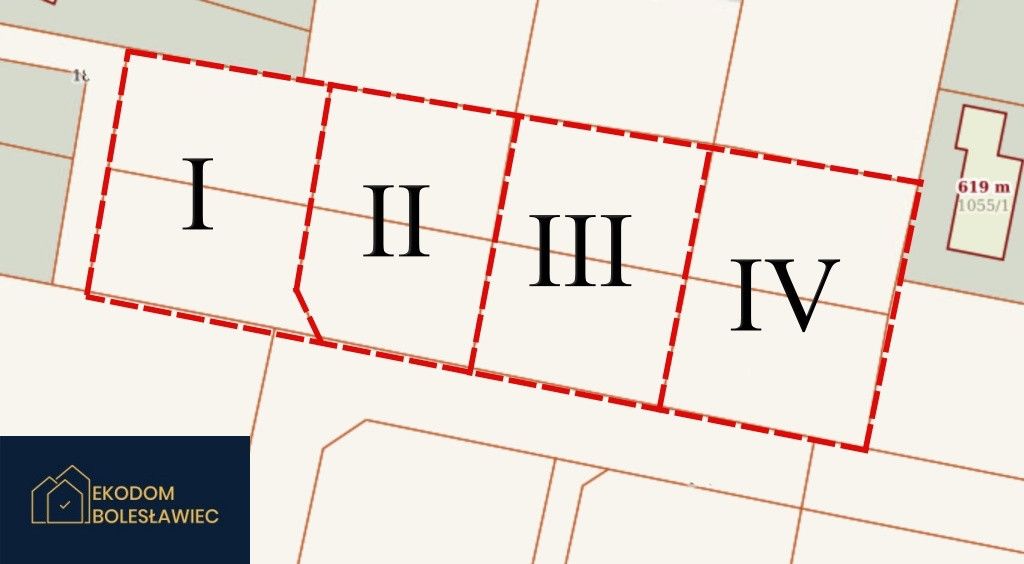 - działka IV - o powierzchni 1077 m2, cena 185 000 zł.